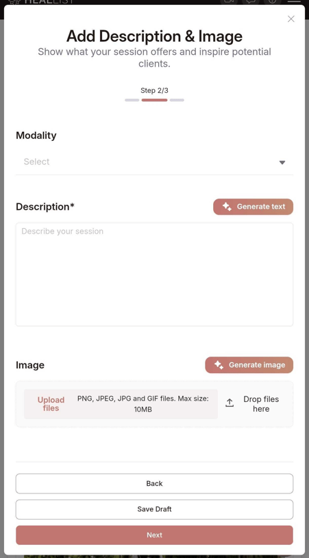 To keep your service listings looking polished and consistent across Heallist, here are the recommended image dimensions you can follow when uploading your service photos: