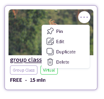 Go to your Heallist Profile and locate the group class you’d like to update.