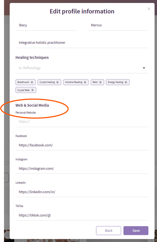 Adding social media links to your Heallist profile allows potential clients to connect with you on different platforms and learn more about your practice. Follow these simple steps to add your social media accounts or website to your healer profile.