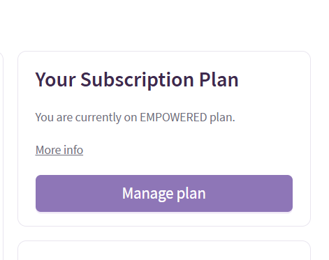 5. Cancel Anytime: You can cancel your subscription at any time by clicking the Manage Plan button on the Billing page.